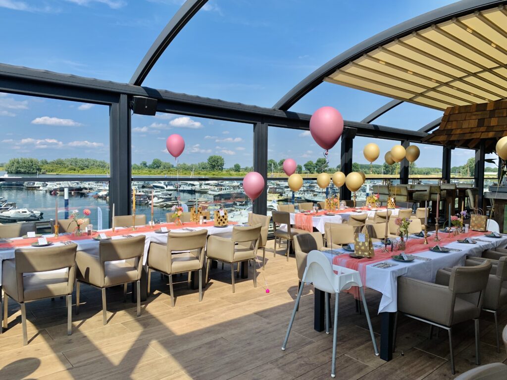 De Watertuin is een prachtige buitenruimte, ideaal voor informele bijeenkomsten, barbecues en recepties. Deze ruimte beschikt over een eigen bar met ingebouwd audio en biedt een uniek uitzicht op het water en de boten. Voor een onvergetelijke entree kunnen gasten zelfs per boot aankomen, wat een bijzondere start geeft aan uw evenement.