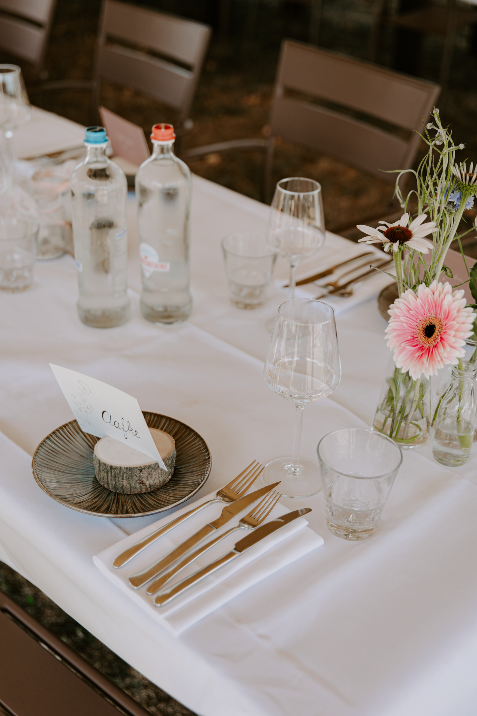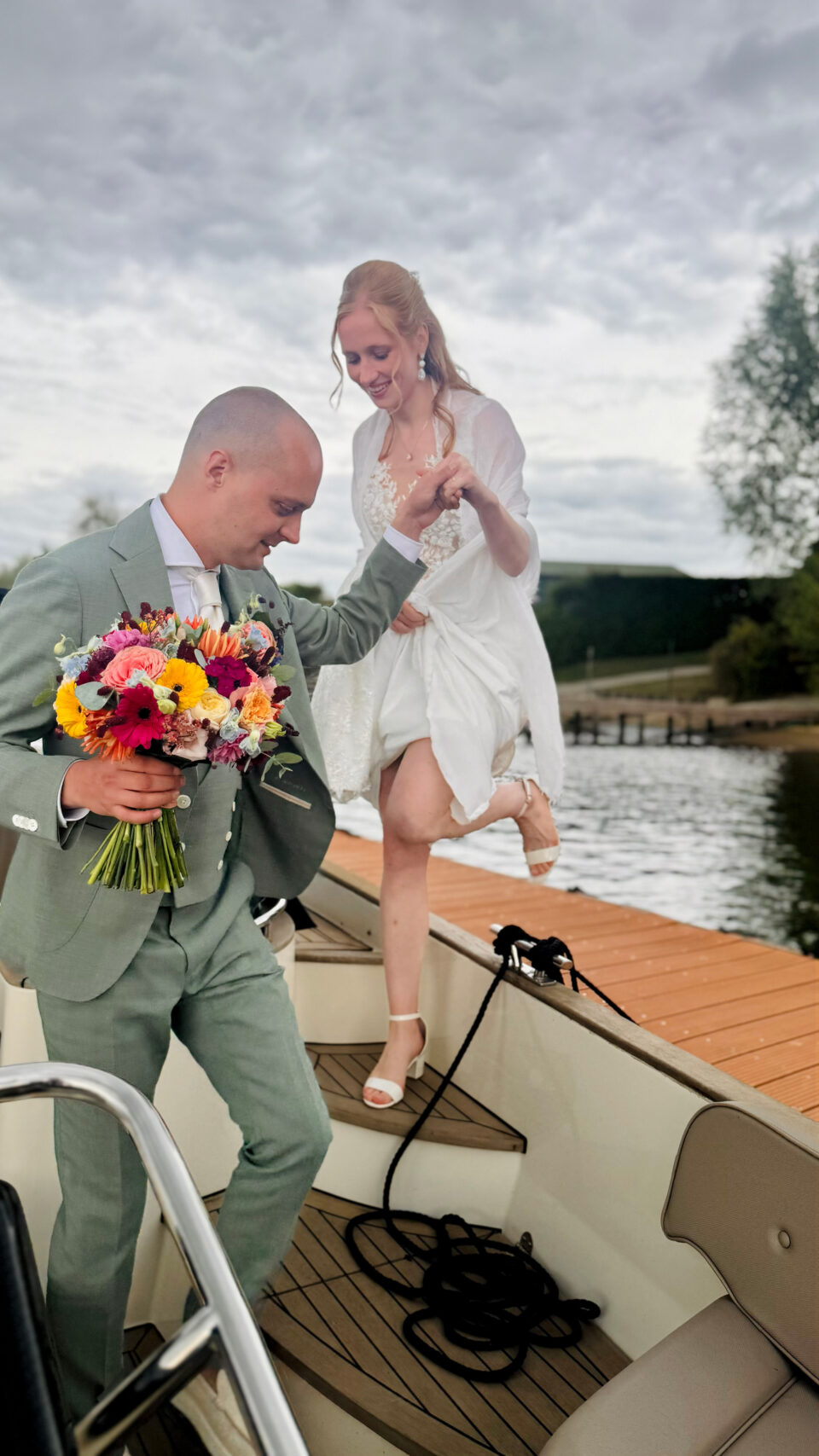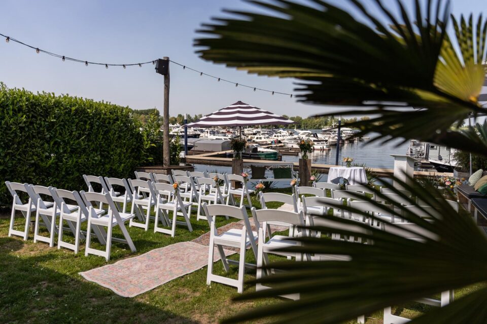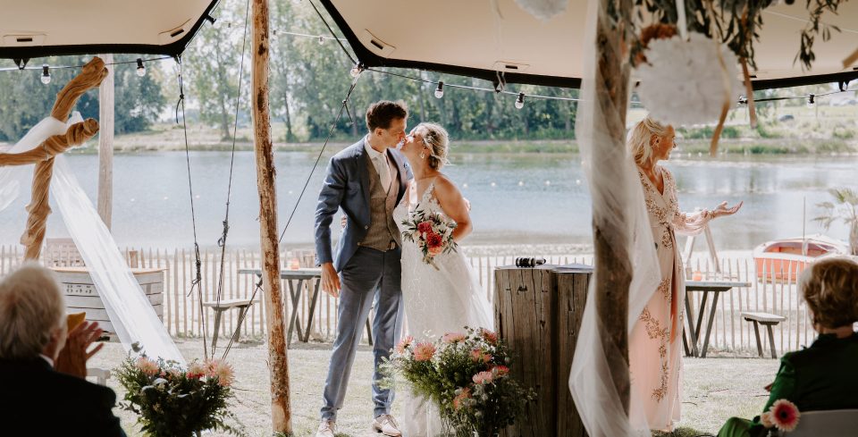 Bij Jeroen en Dukdalf voelden we ons meteen thuis. In slechts een paar minuten begreep hij precies wat voor bruiloft wij voor ogen hadden: goed eten, genoeg te drinken en vooral gezelligheid. De avond voorafgaand aan de bruiloft stond alles al perfect klaar en op de dag zelf verliep werkelijk alles vlekkeloos. De boottocht, de ceremonie, de borrel, het diner en zelfs de late night snack: overal was aan gedacht. Wij hoefden nergens naar om te kijken en konden alleen maar genieten.